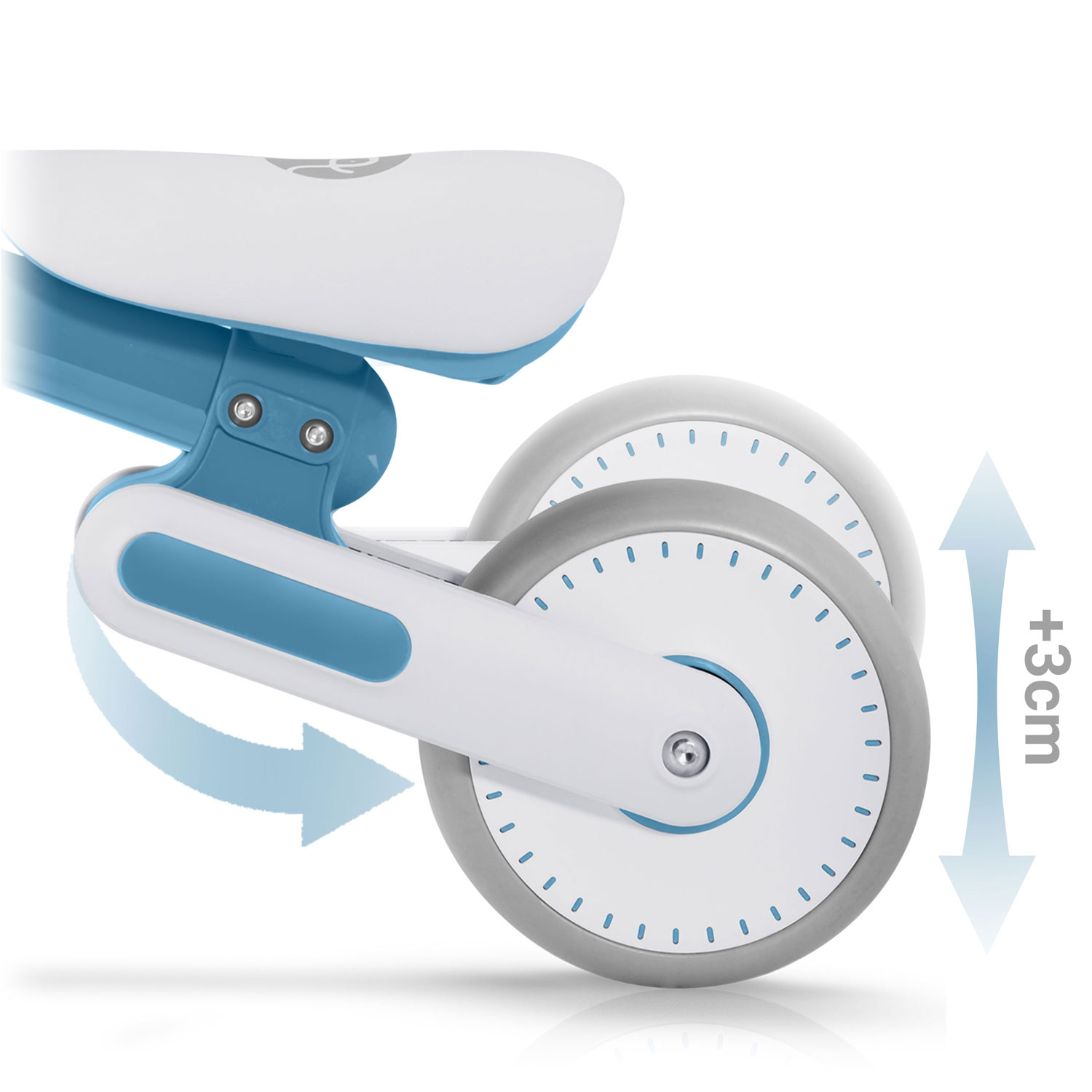 • Lepsze dopasowanie: pozwala idealnie dopasować wysokość siedziska do aktualnego wzrostu dziecka, co poprawia komfort i ułatwia naukę równowagi.