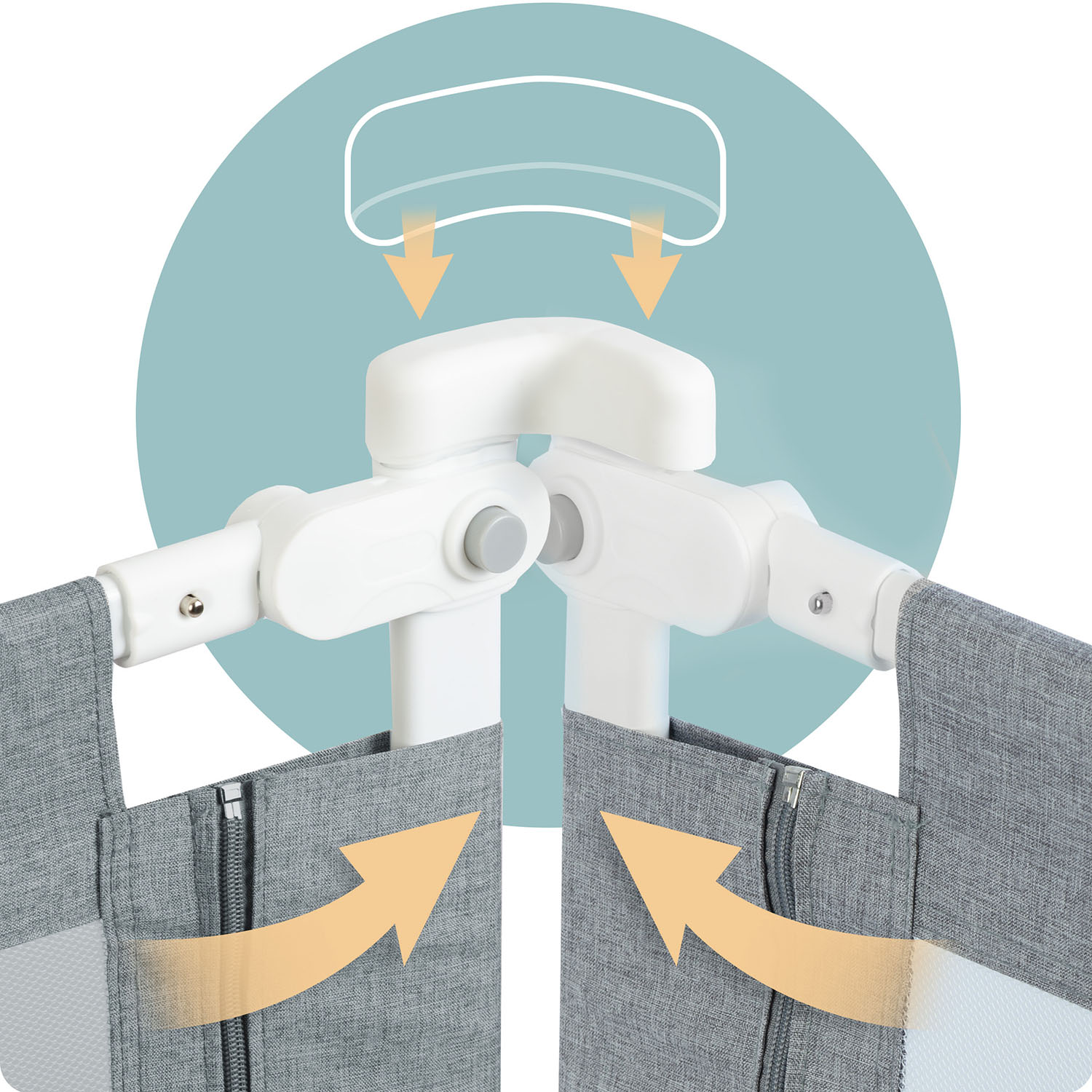 Barierka została wyposażona w trwałą i przewiewną siatkę, która pozwoli na obserwację śpiącego dziecka.