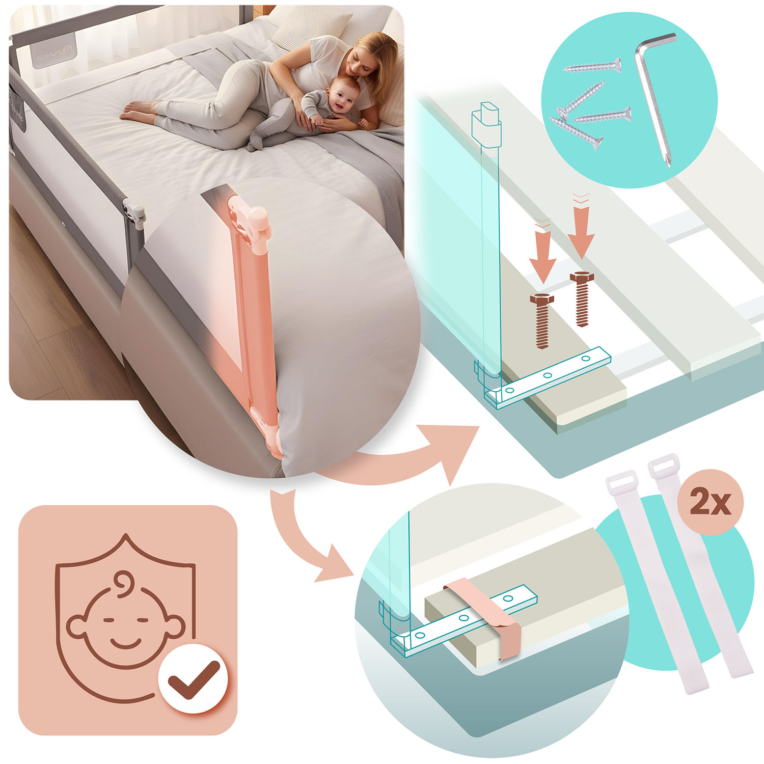 Barierka została wyposażona w trwałą i przewiewną siatkę, która pozwoli na obserwację śpiącego dziecka.