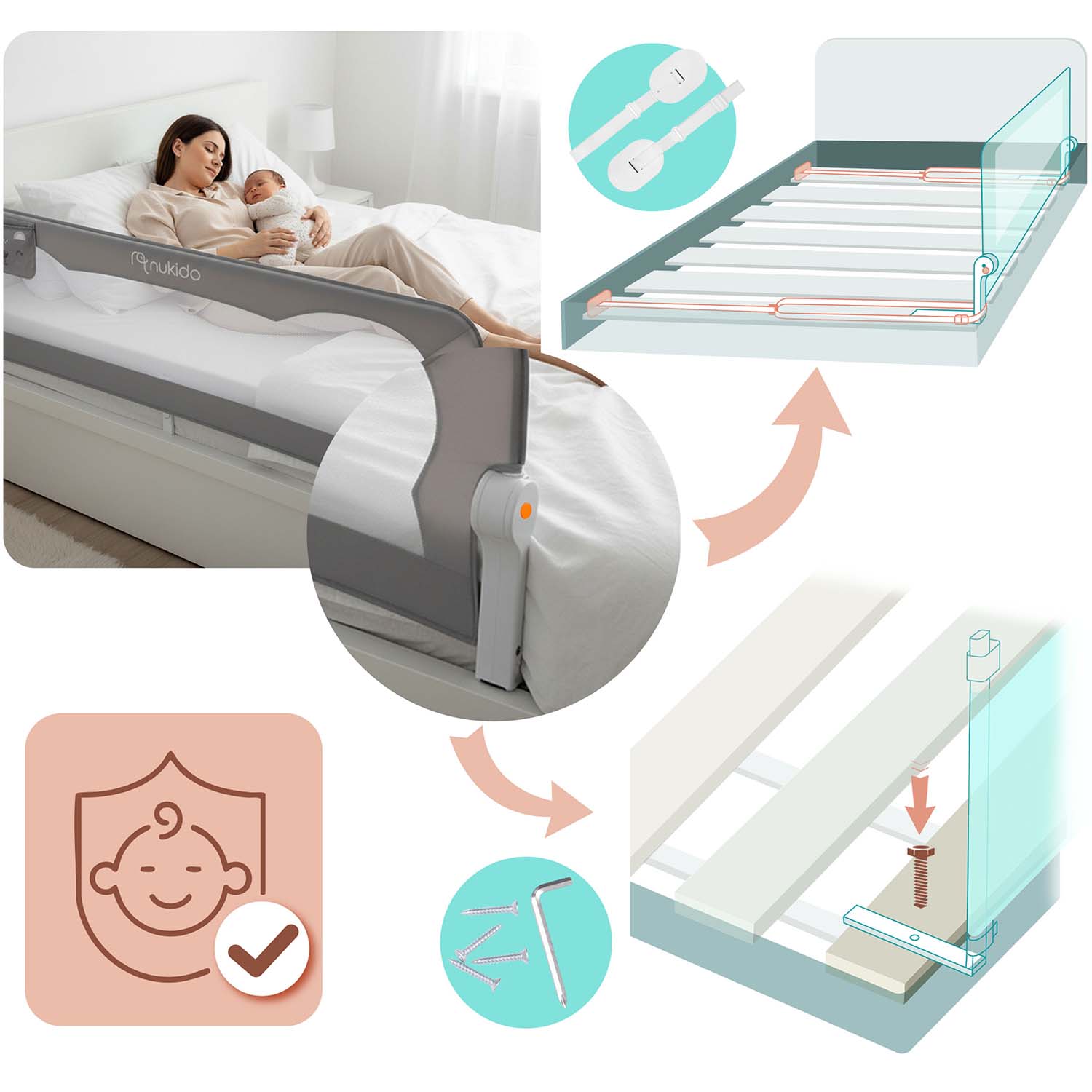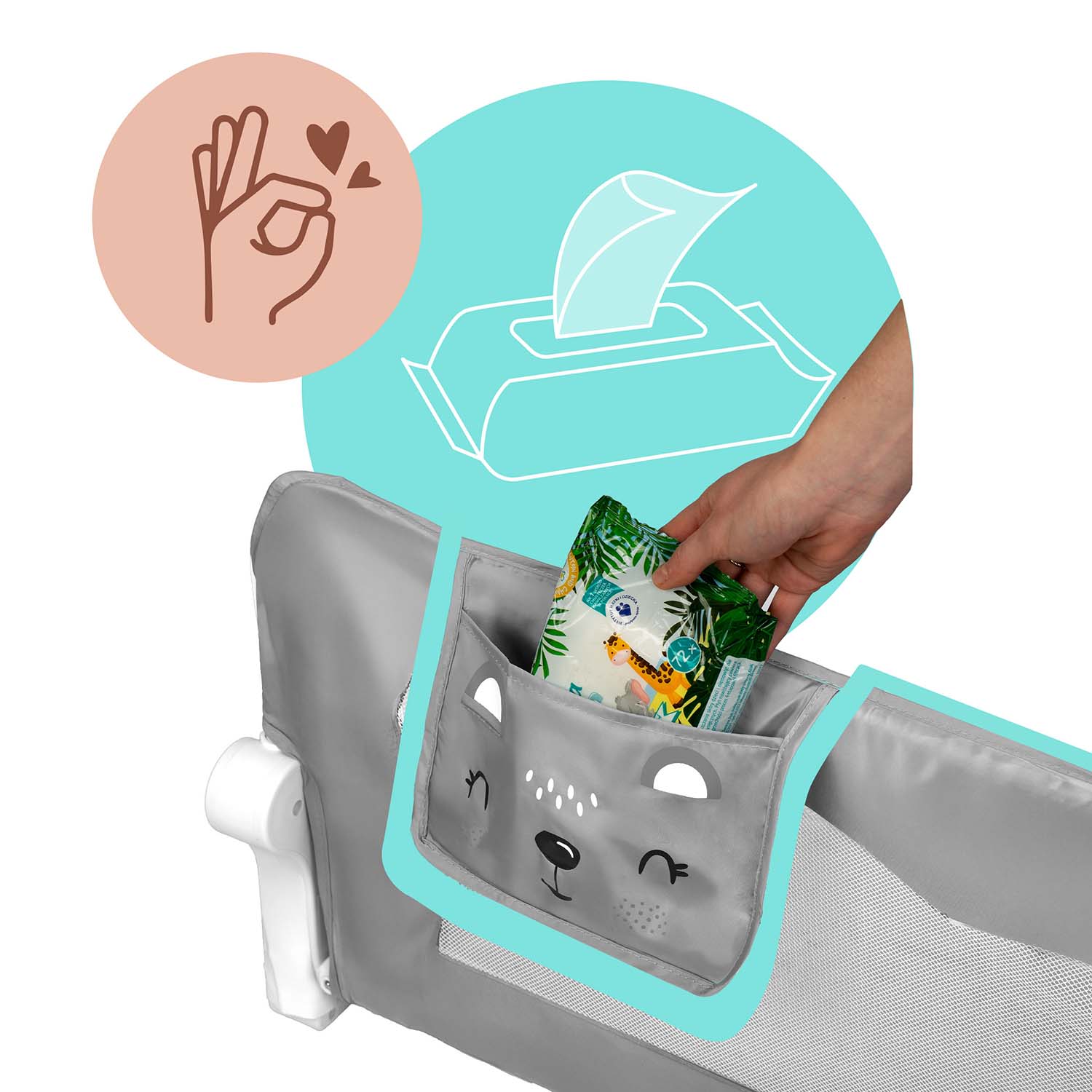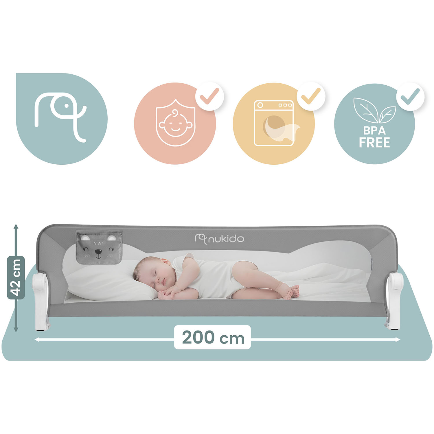 Barierka została wyposażona w trwałą i przewiewną siatkę, która pozwoli na obserwację śpiącego dziecka.