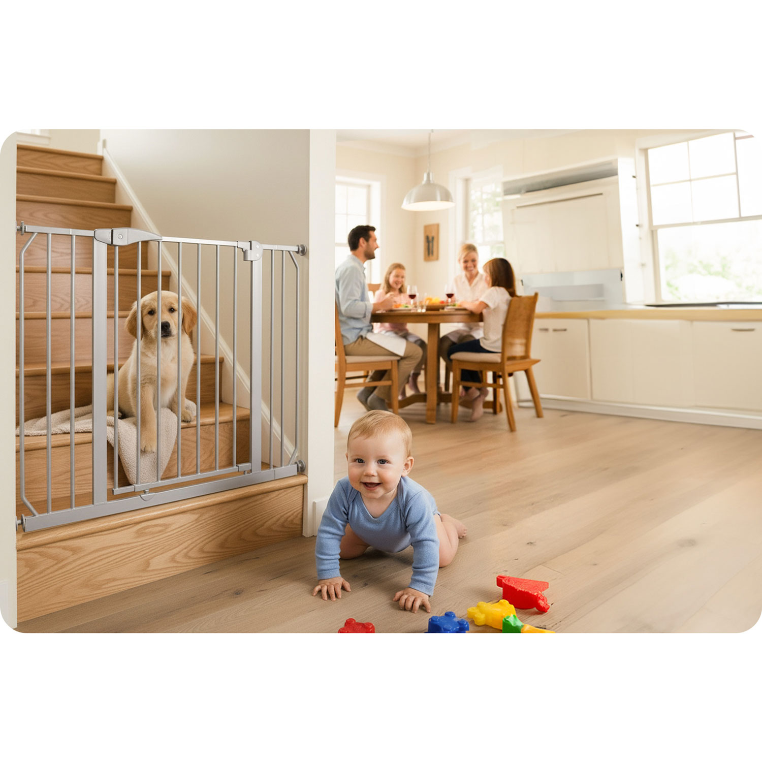 Bramka powstrzyma dziecko przed wejściem na schody lub upadkiem z nich. Nie pozwoli wejść do niezabezpieczonych pomieszczeń.