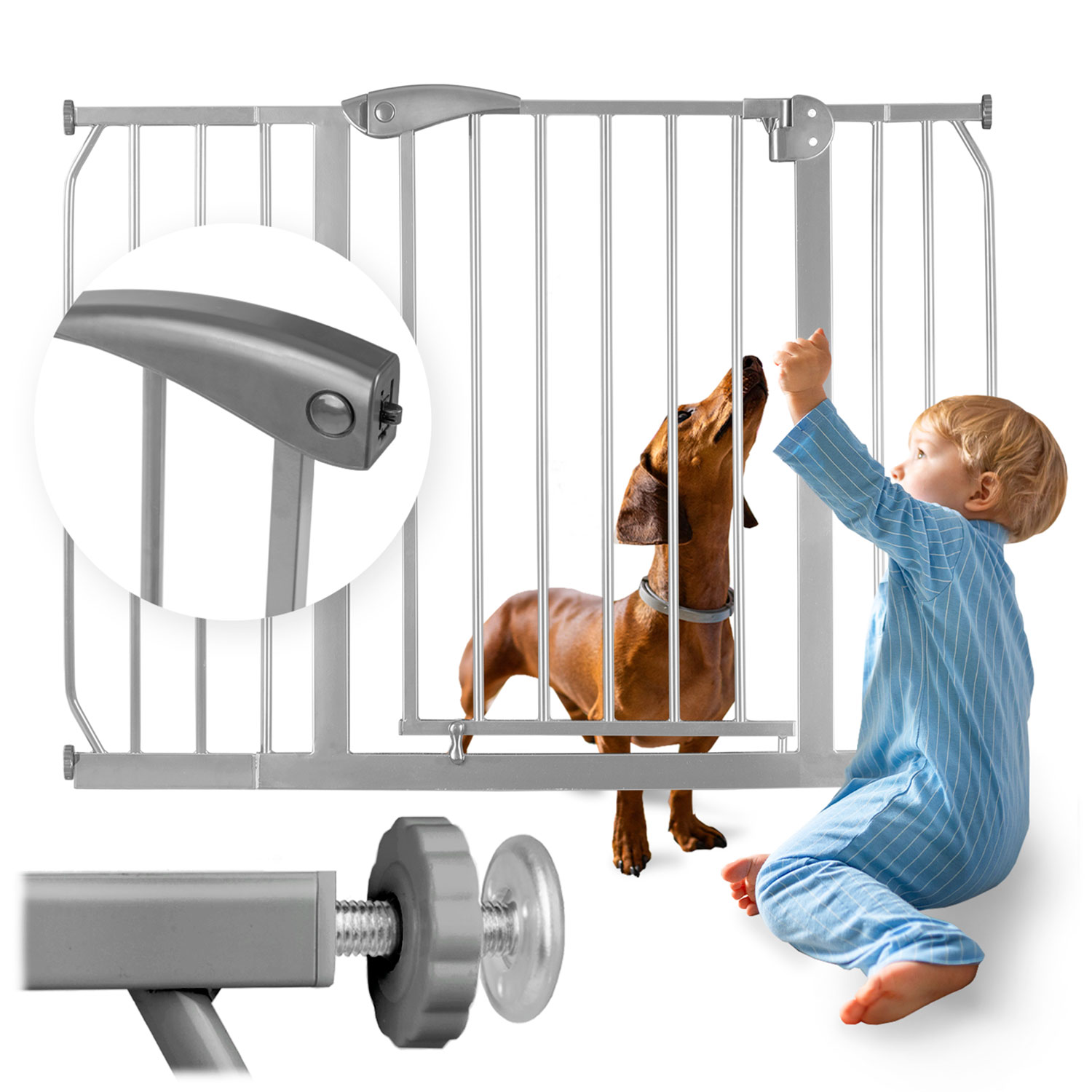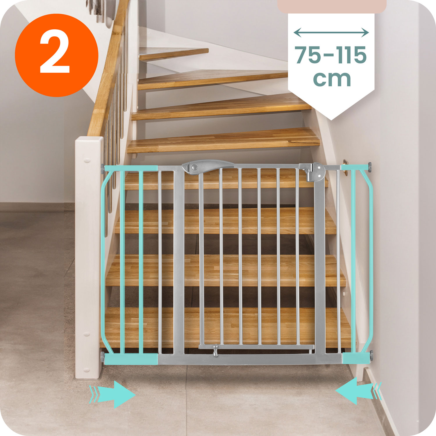 Regulowana szerokość pozwala na zamontowanie jej w drzwiach i przejściach od 75 do 115 cm.