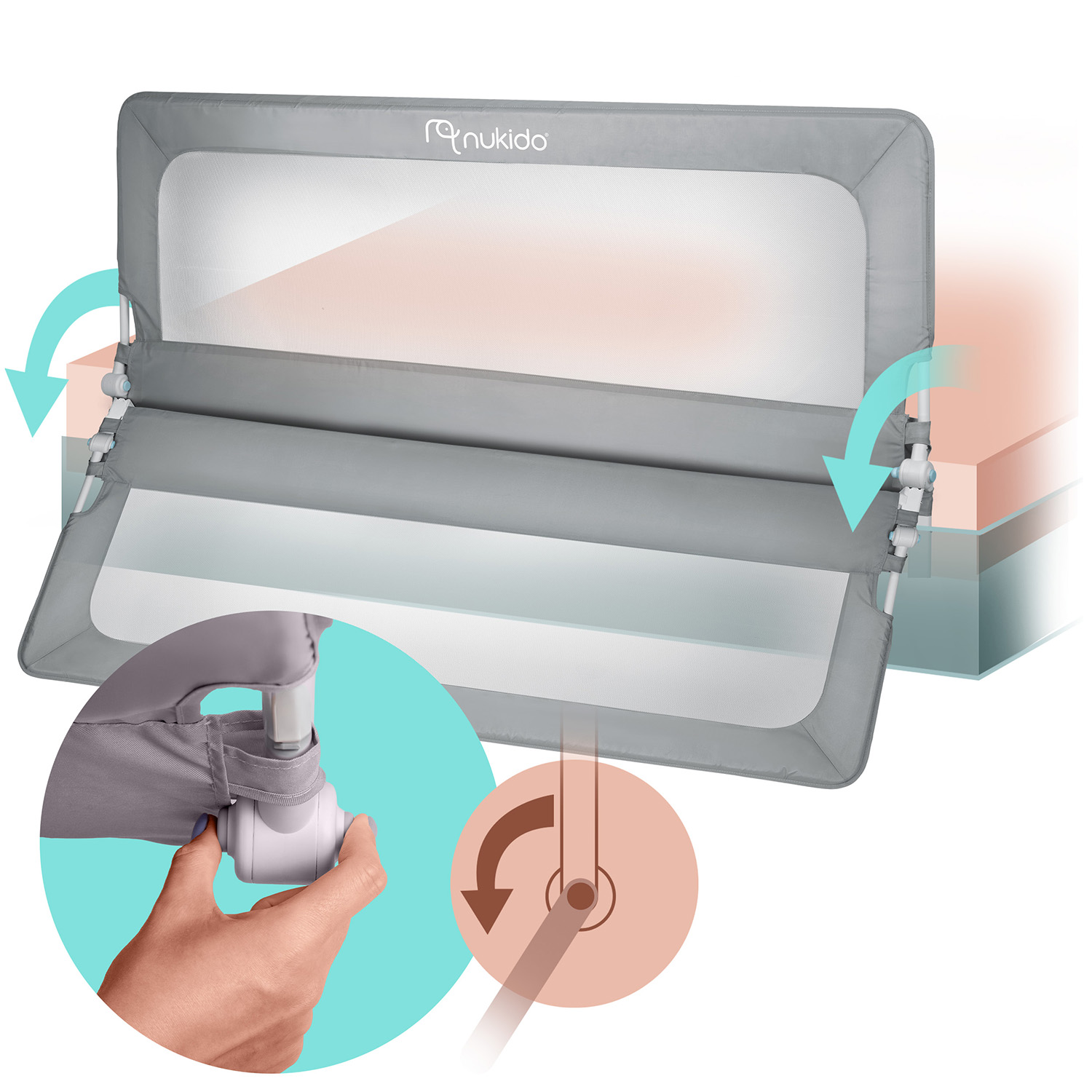 Barierka ochronna do łóżka zabezpieczająca bramka blokada 200 cm Nukido NK-228 szara