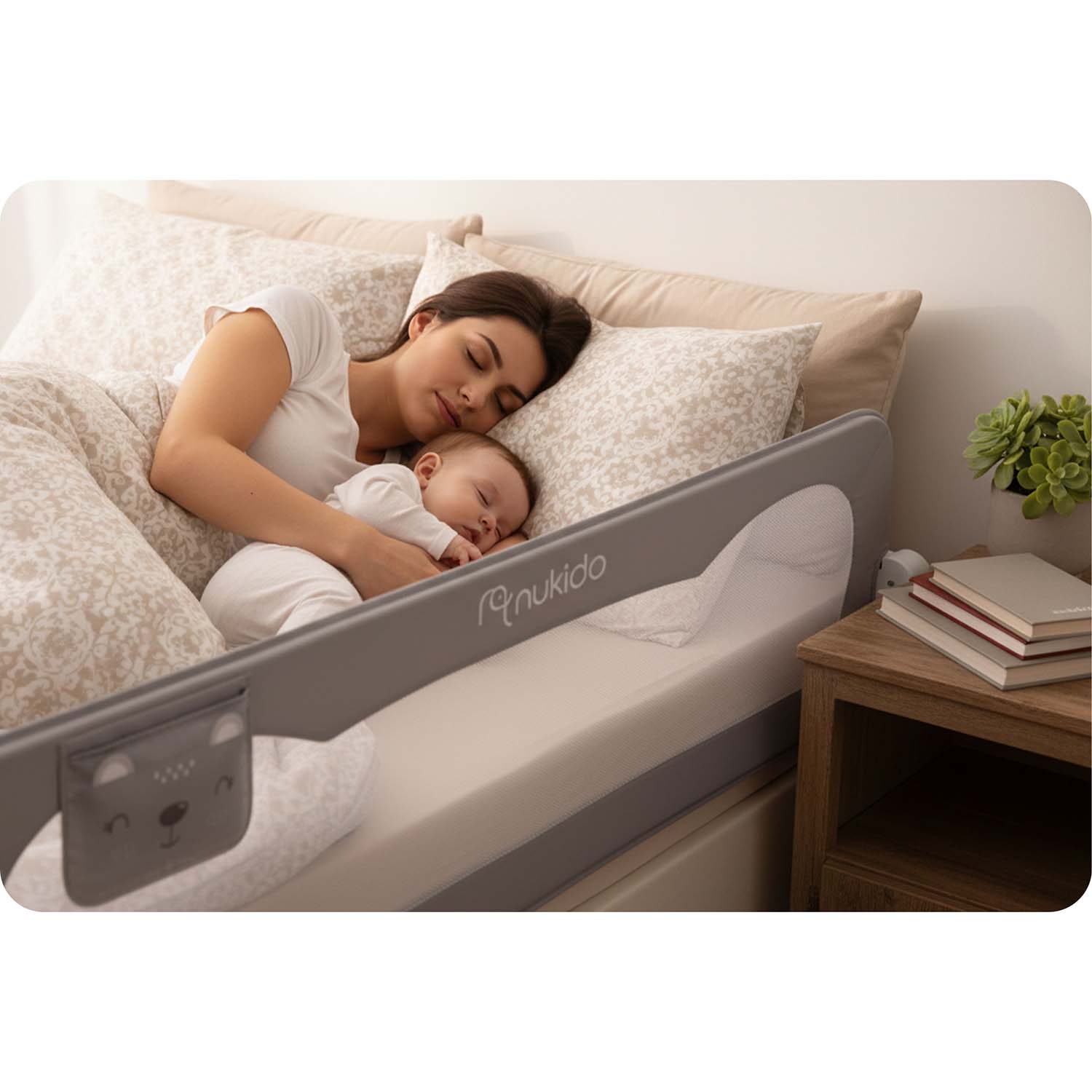 Barierka została wyposażona w trwałą i przewiewną siatkę, która pozwoli na obserwację śpiącego dziecka.