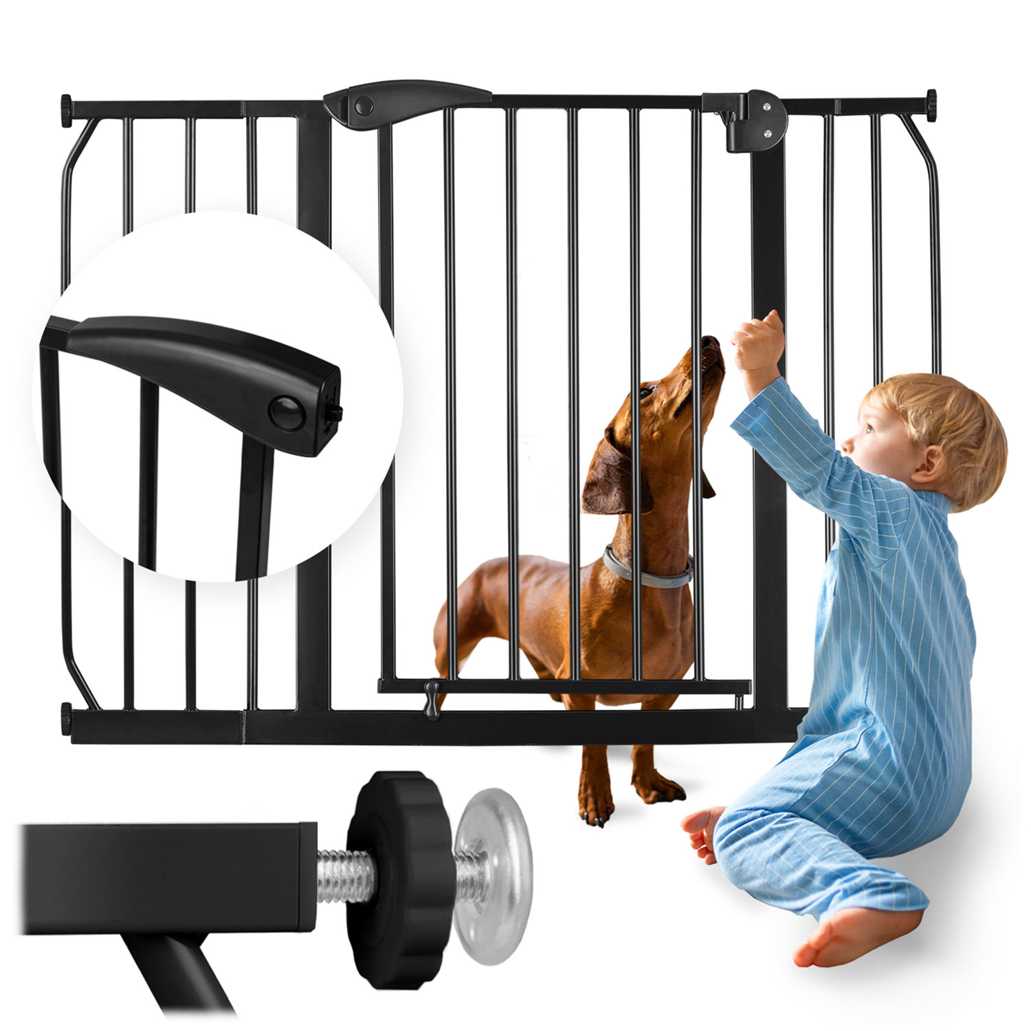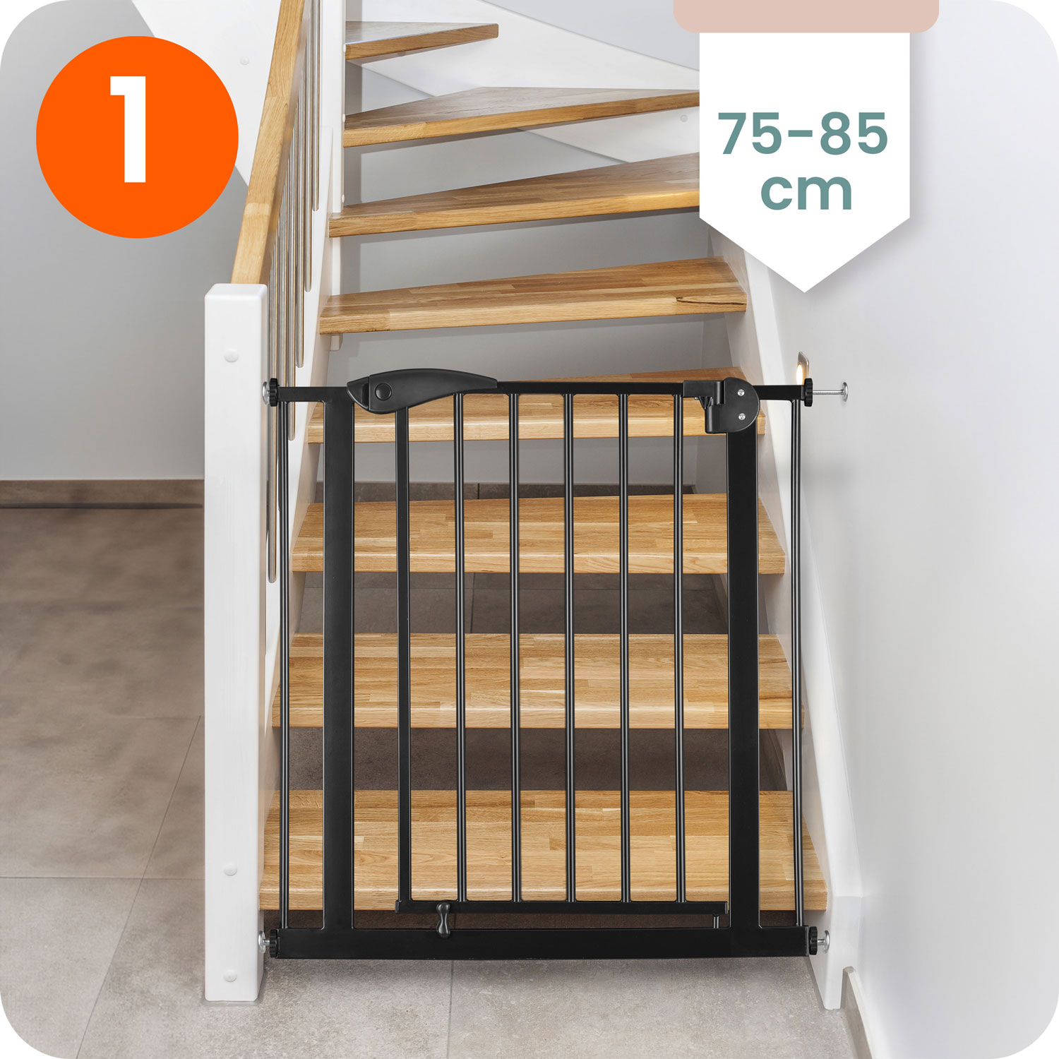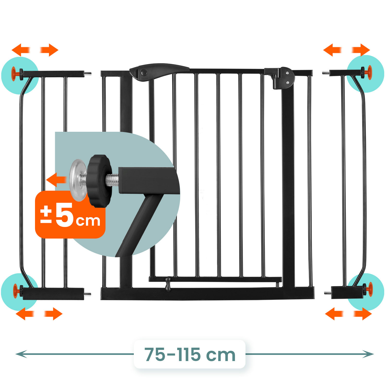 Regulowana szerokość pozwala na zamontowanie jej w drzwiach i przejściach od 75 do 115 cm.
