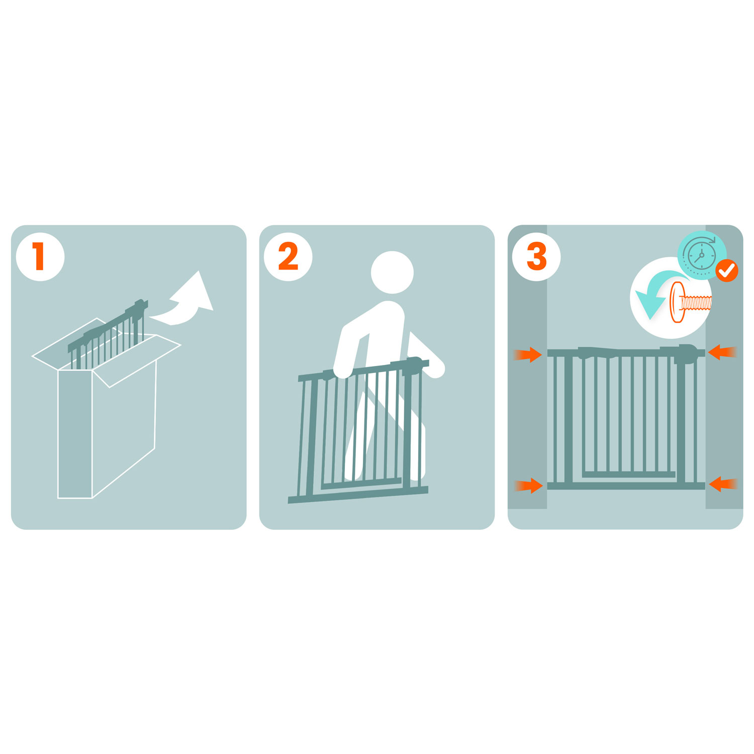 Dzięki możliwości rozbudowania i systemowi montowania bramkę można dopasować do przejść o wymiarach od 75 cm do 115 cm.