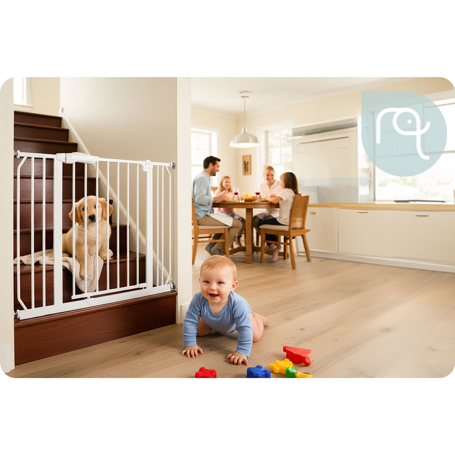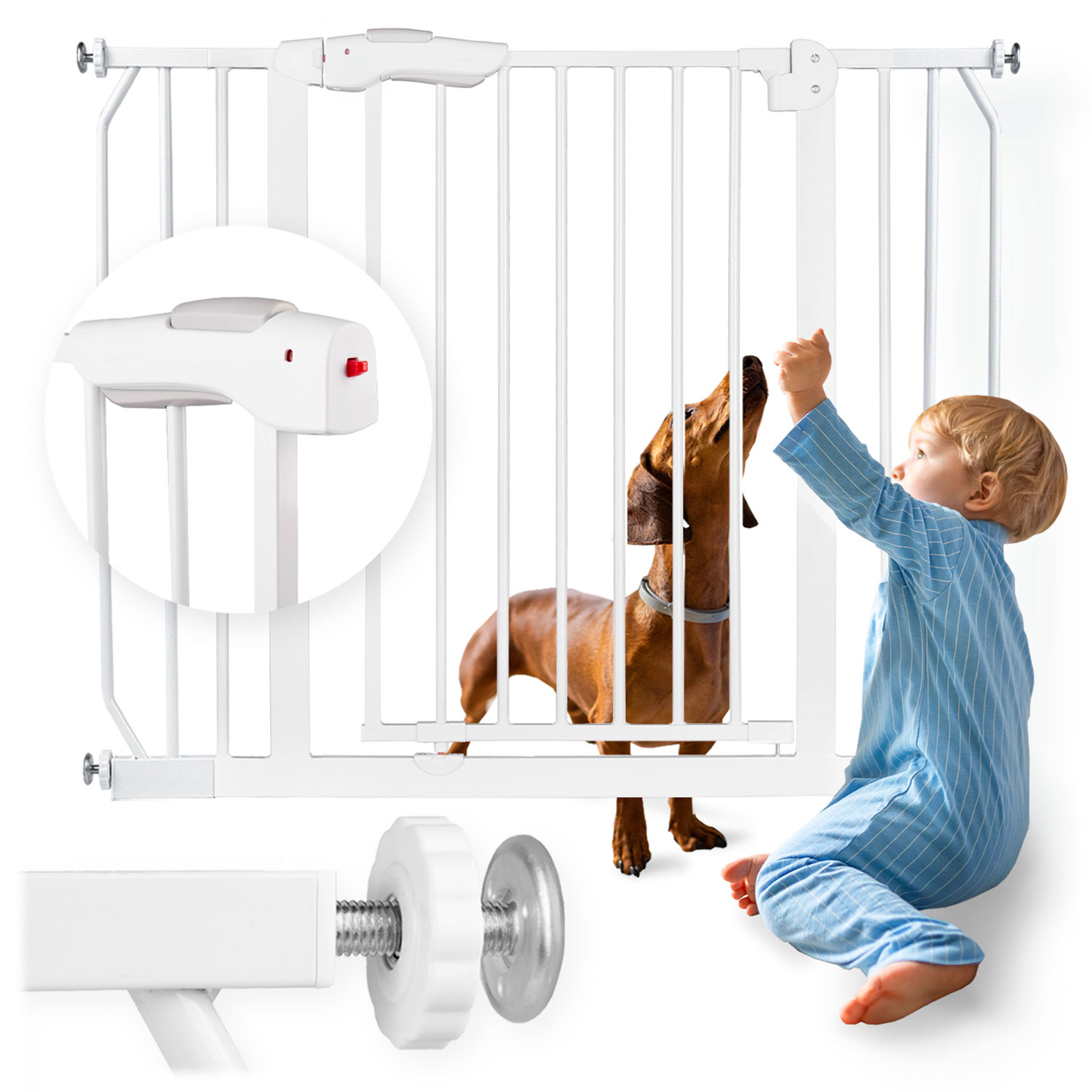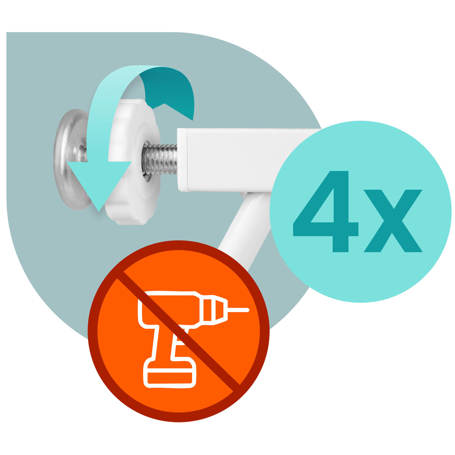 Do zestawu dołączyliśmy 4 mocowania, z którymi bez problemu poradzisz sobie z dopasowaniem bramki do futryny drzwi lub przejścia.
